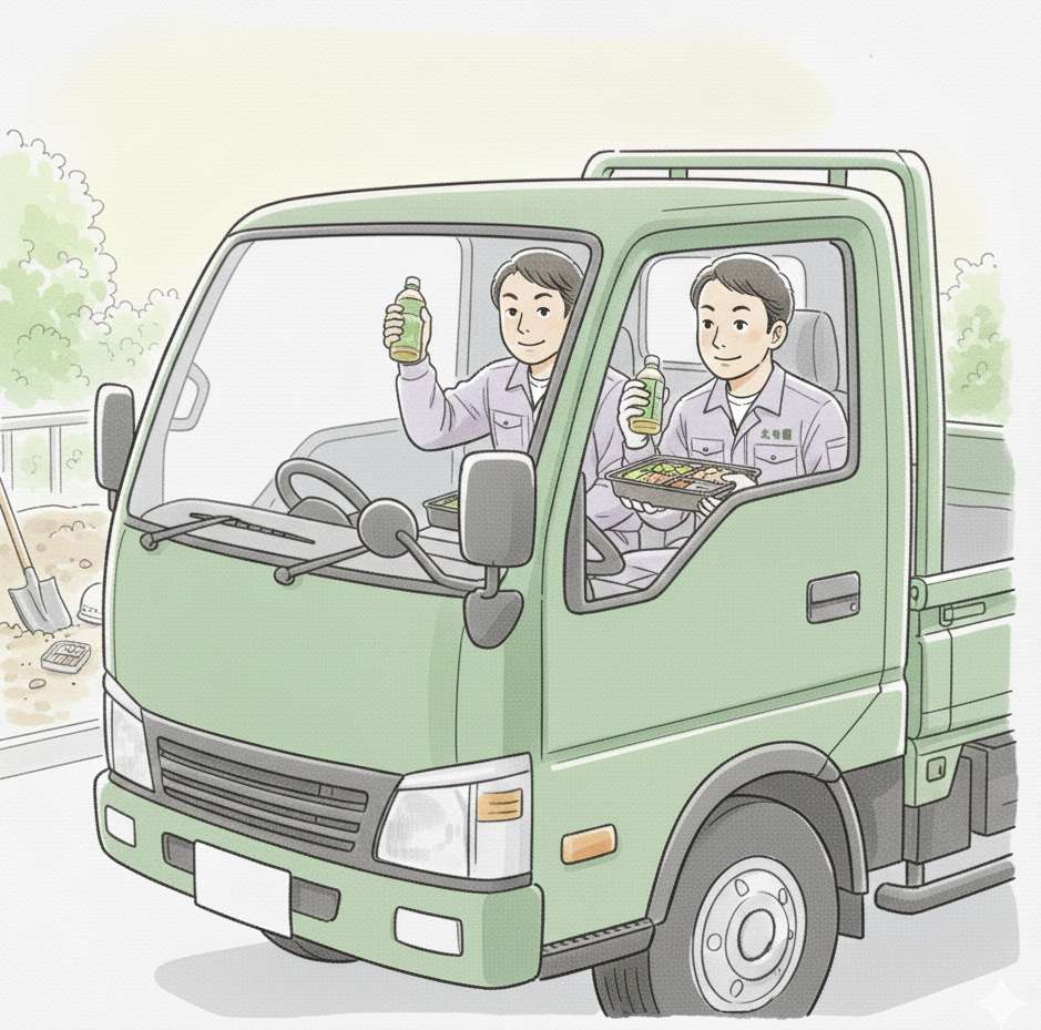 12時頃、午前の作業を一旦中断して昼休憩に入ります。スタッフは自前の弁当を広げて食事を楽しんだり、軽く談笑したりしてリフレッシュします。ここでの会話は仕事の話題だけでなく、プライベートなことから趣味の話題まで多岐にわたります。スタッフ同士のコミュニケーションが深まり、チームワークが強化される大事な時間です。なお、その日の仕事内容(特にコンクリート打設などの施工時には)によってはお昼の時間が遅くなることもあります。